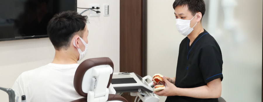 当院では、一般歯科・小児歯科・口腔外科・予防歯科・審美歯科・ホワイトニング・インプラント・メタルフリー歯科、訪問治療など、幅広く診療を行っております。当院では在籍するドクターがそれぞれ得意分野、専門分野を持っていますが、「一本の歯を大切にすることが口の中全体を守ることにつながる」という認識を共有し、歯の保存治療を最も重要視して診療を行っています。